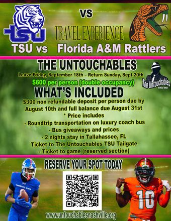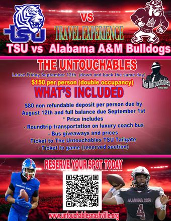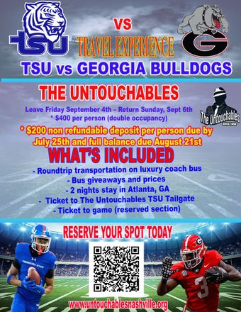 In the 1980s The Untouchables began to taking bus trips to Tennessee State University Football away games to support the team. Known for the great fun, hospitality, onsite tailgate and luxury bus ride. These bus trips too have become a part of the TSU Big Blue Tiger culture.